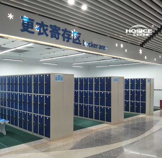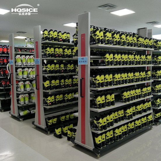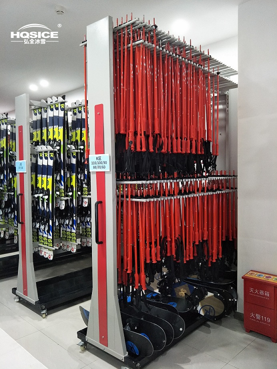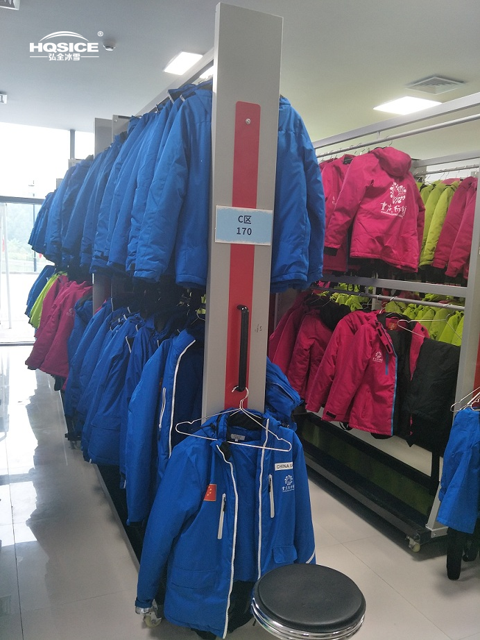 为重庆际华园室内滑雪场提供整套雪鞋、雪服、雪板、雪仗等雪具存放架及雪服烘干机、智能衣物寄存柜滑雪设备